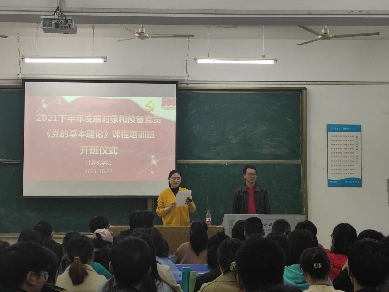 为切实加强对预备党员和发展对象的教育培训,根据发展党员工作的实际需要和党员教育管理安排,10月22日晚,计算机学院分党校在博约楼109教室举行2021年下半年发展对象和预备党员培训班开班仪式。