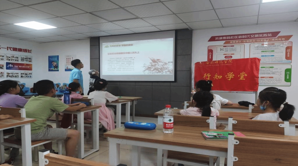 7月13日,计算机学院惠园社区行知学堂开展“不忘初心、牢记使命”主题教育,意在让小学员们增强对基本的党史知识的了解,体会中国共产党一百年来走过的艰辛与辉煌。小先生李捷进行党史教育的授课。