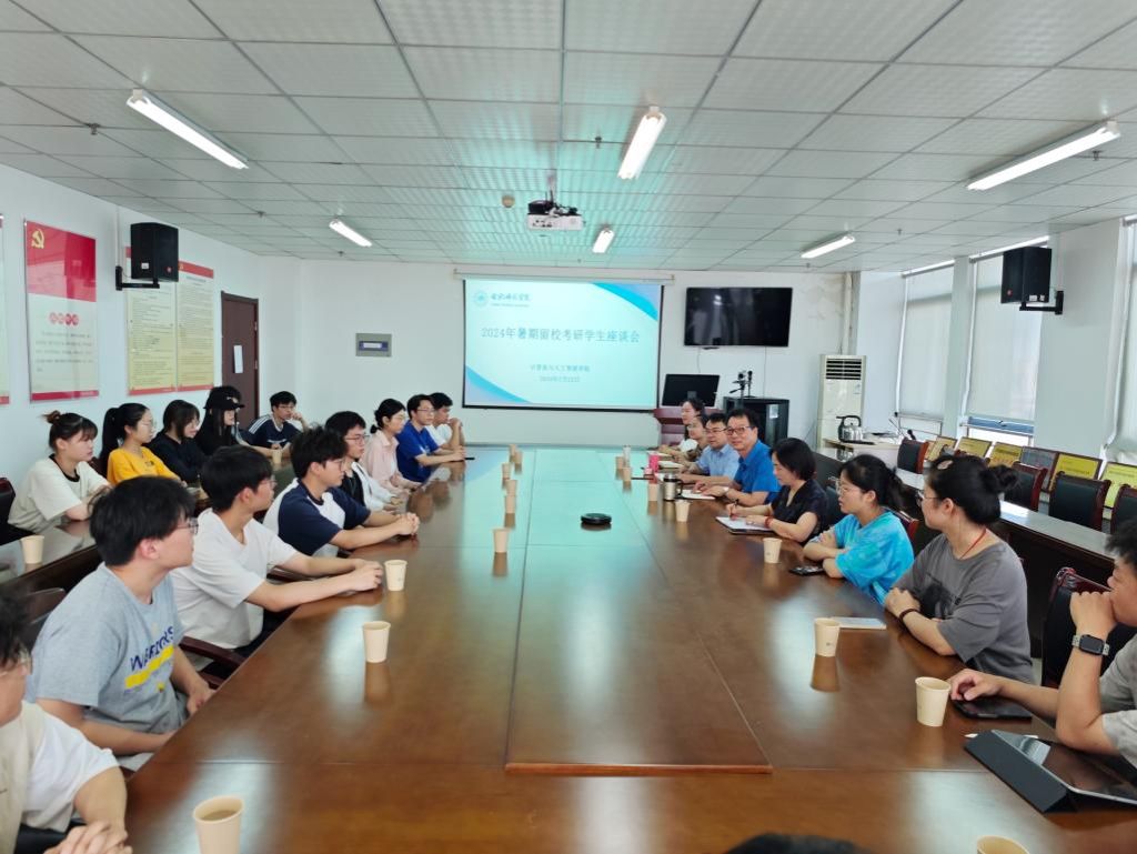 王祥详细了解与会同学暑期学习和生活情况,对同学们勤奋刻苦的学习精神表示肯定,他叮嘱学生一要提高学习效率,高效完成暑期学习任务;二要注重体育锻炼,做到劳逸结合、张弛有度;三要强化安全意识,严格遵守留校规章制度,确保人身和财产安全。谢飞就目标院校选择、专业课程学习、考试重难点答疑等方面给学生做了详细指导,提醒学生要合理安排复习计划,加强沟通交流,充分利用好假期的黄金时间,注重在学习和实践中不断提升综合能力。杨萍和刘路路对学生在学习和生活中遇到的问题进行了针对性回应和细致解答,鼓励学生要坚定信心、培养耐心、保持恒心,打好考研这场持久战,并祝福大家能“一战成硕”。