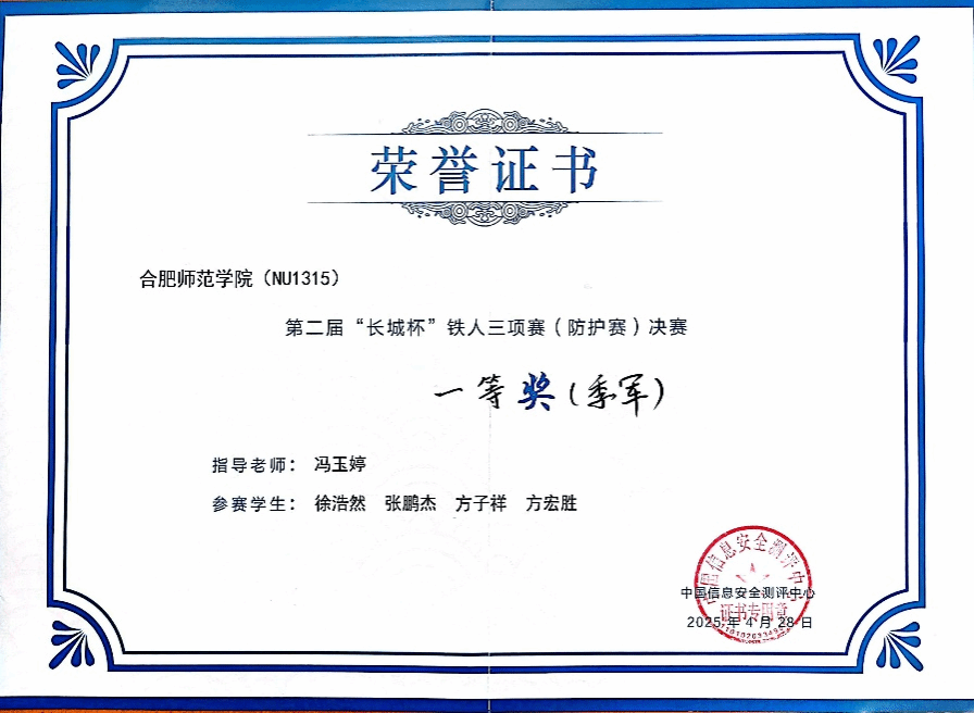 “长城杯”信息安全铁人三项赛(防护赛)由中央网络安全和信息化委员会办公室、教育部、国家市场监督管理总局、国家数据局指导、中国信息安全测评中心、北京师范大学、中国电信集团有限公司、中国移动通信集团有限公司联合主办,以“智能防护、开启数字安全新时代”为主题,共有来自清华大学、复旦大学等知名高校在内的84所高校100支队伍入围全国总决赛。betway参赛团队在总决赛的“实战场景”和“专项能力”两个赛项中沉着应对、稳定发挥,最终以总积分领先的优势获得季军。