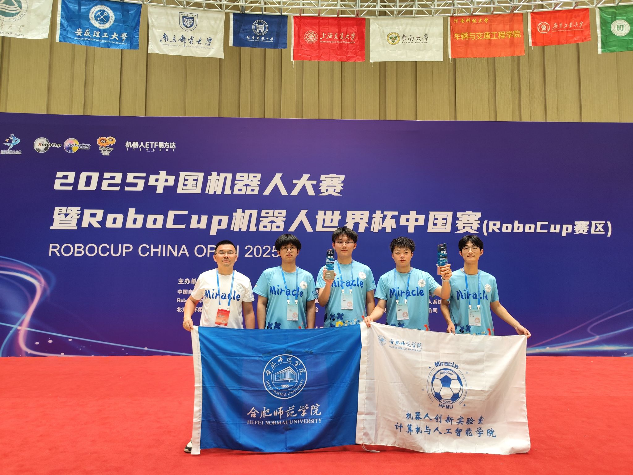 2025年5月2日至4日,2025中国机器人大赛暨RoboCup机器人世界杯中国赛在北京雁栖湖国际会展中心圆满落幕。作为国内机器人领域最具影响力的赛事之一,本届大赛由中国自动化学会、RoboCup中国委员会及北京市怀柔区人民政府联合主办,吸引了全国73所高校的233支参赛队伍同台竞技,成为展示机器人技术创新与学术成果的重要平台。经过激烈角逐,betway西汉姆联官网机器人创新实验室Miracle团队在RoboCup仿真2D与仿真3D项目中分别斩获亚军与季军,双双登上领奖台。