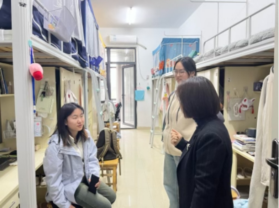本网讯为切实做好学生宿舍安全教育及管理工作,进一步推进“优良学风宿舍”创建,betway西汉姆联官网近期开展了春季宿舍安全卫生检查工作,学院党委副书记杨萍带领辅导员及学生干部深入学生宿舍,进行安全卫生检查。