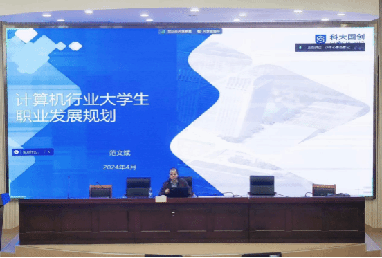 范文斌学长首先对国内目前经济情况及就业形势进行分析,从考公、考研、创业、民企四个未来就业方向入手向学生分享了各种就业途径的利弊关系,重点讲解了计算机行业6个企业岗位与分工以及岗位所需要的知识及技能,更好地帮助学生理解计算机行业的岗位要求。最后,范文斌学长表示,在职业规划过程中,大学生们首先要深入了解自己的兴趣、特长和价值观,明确自己的职业目标和定位。只有对自己有清晰的认识,才能做出适合自己的职业选择。他指出,随着科技的飞速发展和产业的不断升级,未来的职业市场将更加多元化和复杂化。因此,大学生们需要不断学习新知识、掌握新技能,提升自己的综合素质和竞争力。